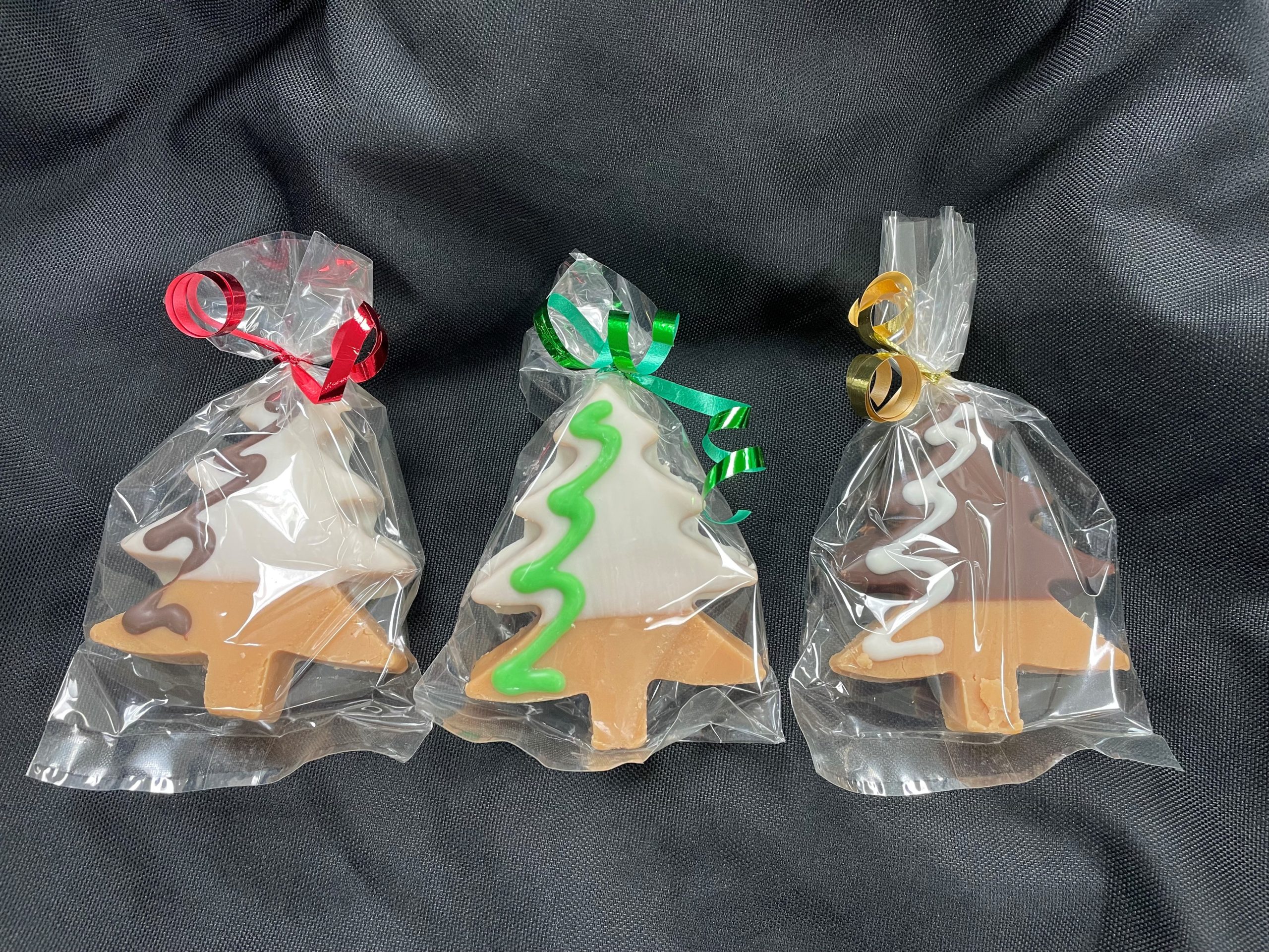 Delicious caramel fudge shape individually made using a hand cutter and decorated with chocolate, 3 different colours, chosen at random for you.